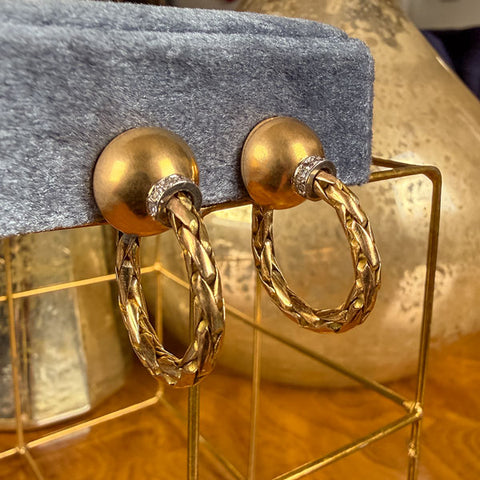 Vintage French Hoop Diamond Earrings