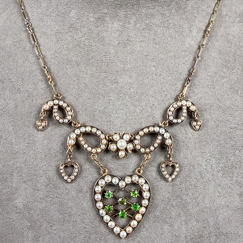 Edwardian Demantoid & Pearl Heart & Snake Necklace