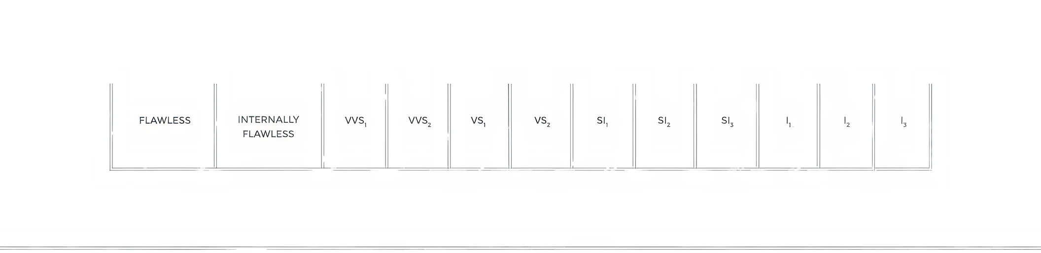 A diamond's clarity is graded based on how visible its clarity characteristics are at 10x magnification. Flawless diamonds have no visible clarity characteristics at 10x magnification, while a Very Very Slightly Included (VVS) clarity diamond has the eqivalent of a pinpoint inclusion. It is difficult even for a trained diamond grader to find VVS inclusions. Clarity characteristics are very small in the Very Slightly Included (VS) grades and become easier to see moving down the clarity scale. At Included (I) clarity, inclusions are visible to the eye without magnification.