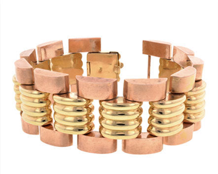 Metalsmiths alloyed low karat gold with copper creating soft rose tones. Photo credit Doyle & Doyle.