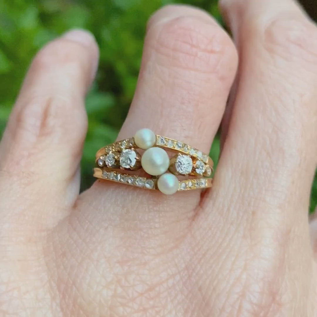 Antique Pearl & Diamond Ring sold by Doyle and Doyle an antique and vintage jewelry boutique